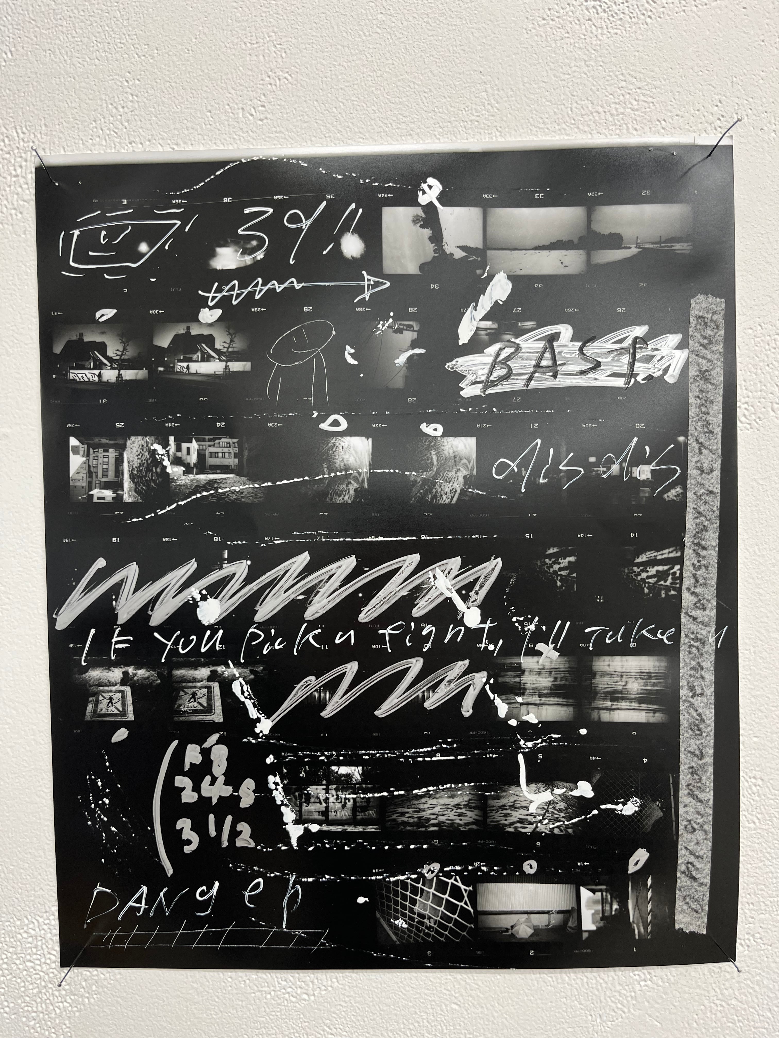 本作は、過去に撮影されたフィルム写真のコンタクトシートをベースに、ディスカー自身がスクラッチ、マーカー、ペイントによる即興速攻最強スタイルで直接的な介入を加えたユニークピースとなっています。